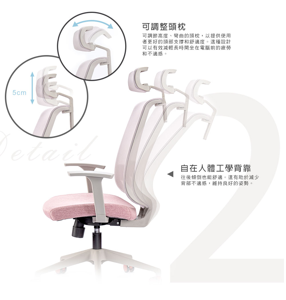 •頭枕7段升降上下可調